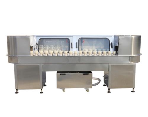 先通过循环水对瓶子进行高压内外喷,然后通过清水管道对瓶内外进行喷淋(清水喷淋后,可根据需要添加消毒剂喷雾)。后经控水后转出挡水罩,人工将瓶子放在输送线上,进入下一道工序。本机与瓶控机一体化,采用链条导轨传动,性能更加稳定耐久。洗瓶设备可与灌装机、压盖机、输送机等组成包装生产线。比较多的应用于酒厂、饮料厂、啤酒厂、制药厂等食品行业。